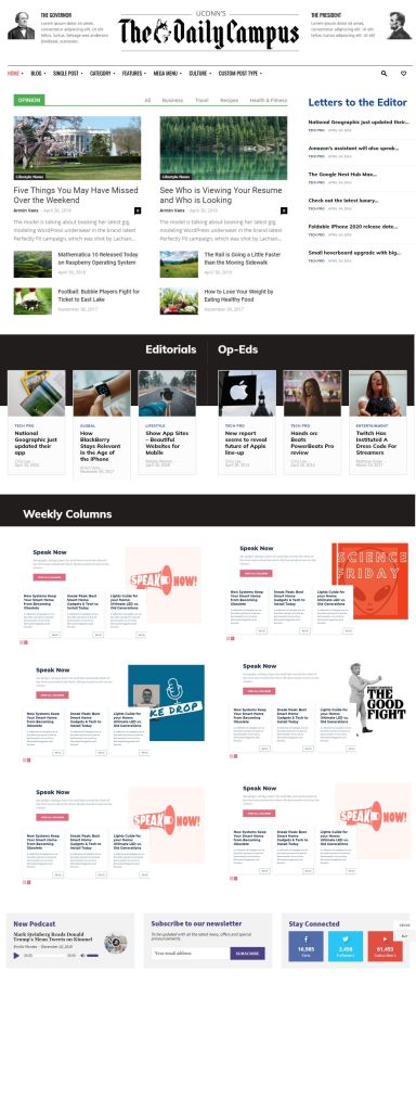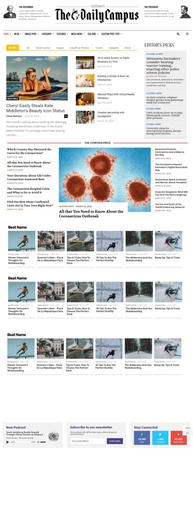 When I worked as a digital producer at The Daily Campus my freshman year of college, our website was hosted on Squarespace. As it turns out, Squarespace was not built for thousands upon thousands of posts, so the website was often glitchy and had very little of the functionality we wanted. The transition of the website from Squarespace to WordPress became much mythologized. The idea was longingly invoked whenever an article mysteriously disappeared from the website, or a page took minutes to load. So, when I was hired as the associate digital editor at the end of my freshman year, I was determined to make the WordPress dream a reality. This is a (long) explanation of how I, in collaboration with the digital editor Courtney, worked to create the Daily Campus website we have today.